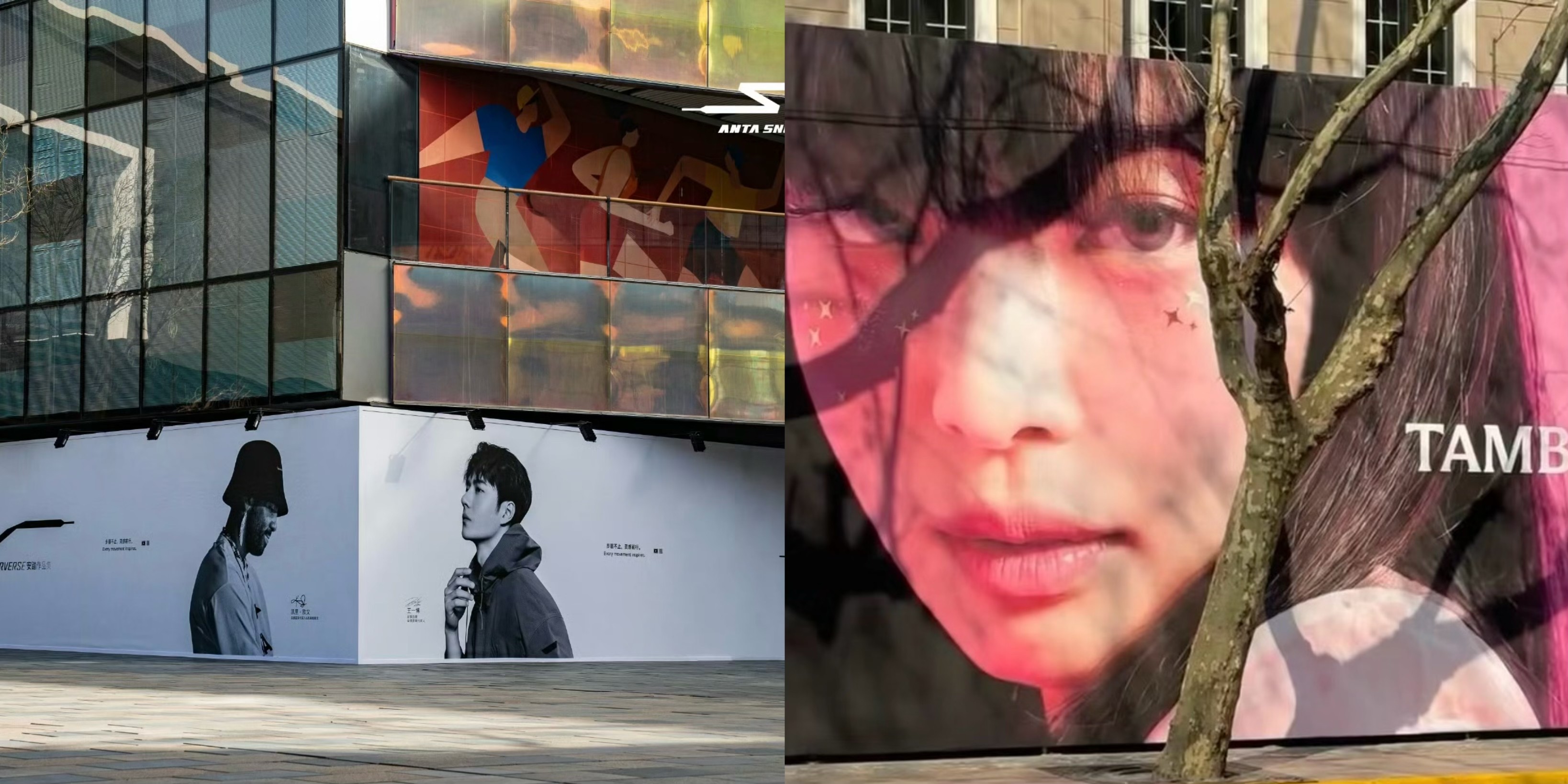 在三里屯新店开业前,安踏用王一博、欧文的海报作为围挡,前去合照打卡的人络绎不绝,直到被几名安保人员因人流过多、有安全隐患而制止,有博主表示“谁能想到一个围挡能火到这种程度。”上一个有类似影响力的围挡,还是韩国香氛品牌TAMBURINS在上海淮海中路的Jennie海报墙。