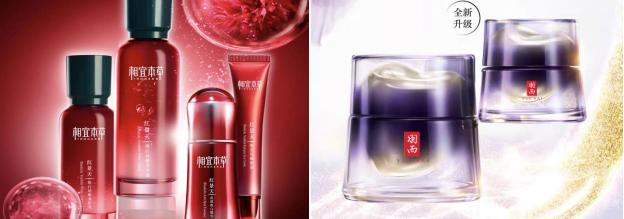 图:相宜本草红景天系列(左)和羽西人参系列(右)
