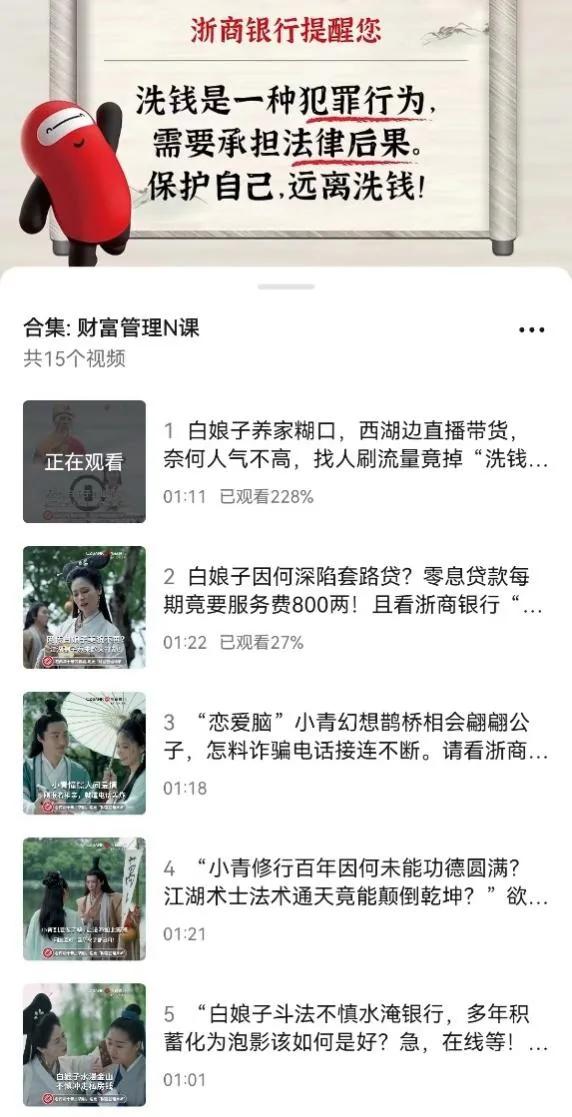 大家可以感受一下标题,咱就是说白娘子还挺忙,一会忙着拍“反洗钱”,一会又深陷“套路贷”,虽然每集只有1-2分钟左右,但通过白娘子的视角普及金融反诈知识,是比生硬的科普视频接受度高多了哈~