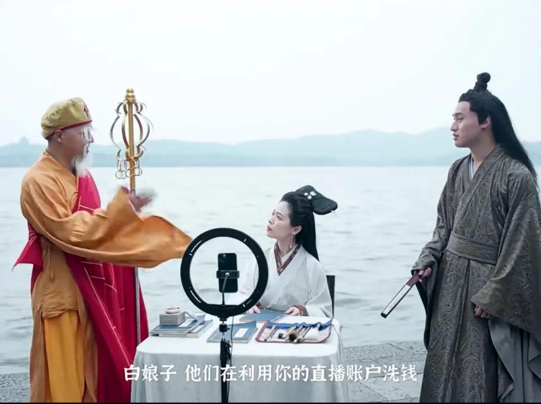 赶上了这一波金融圈拍土味短剧浪潮的,还有浙商银行,比如它们的“财富N课堂”推出了“西湖十景”系列短剧,主打一个古今结合,又有趣又有梗。