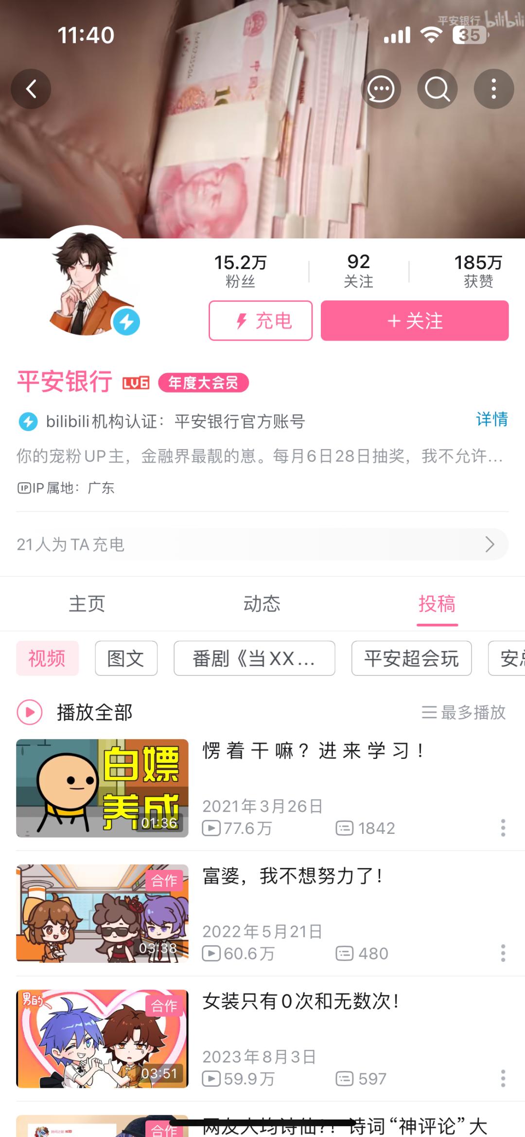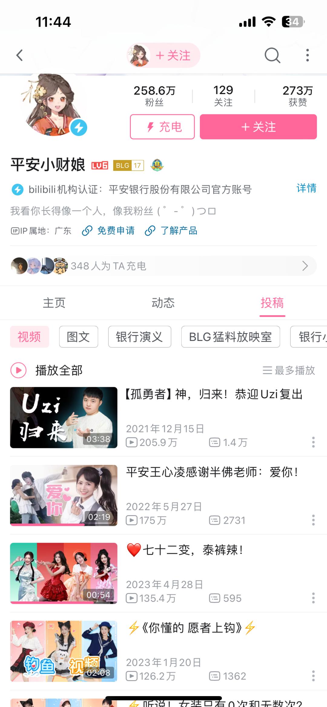 平安银行在B站上有个“平安小财娘”的官方账号,也出了不少播放量过百万的宅舞视频。