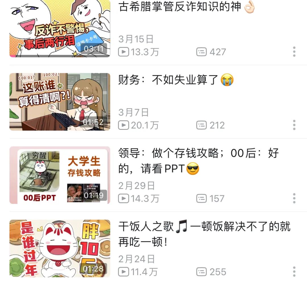 最近,招行发布的几期视频就都是二次元相关,而且超有梗,比如“古希腊掌管反诈知识的神”“干饭人之歌”,乍一看就让人有点进去观看的欲望。