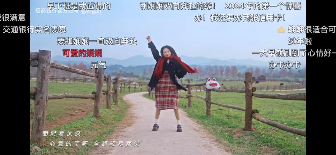 别看宅舞的热潮已经不复从前,但这个小姐姐的人气还是很高,今年招行官方账号的第一条视频又是她出镜。