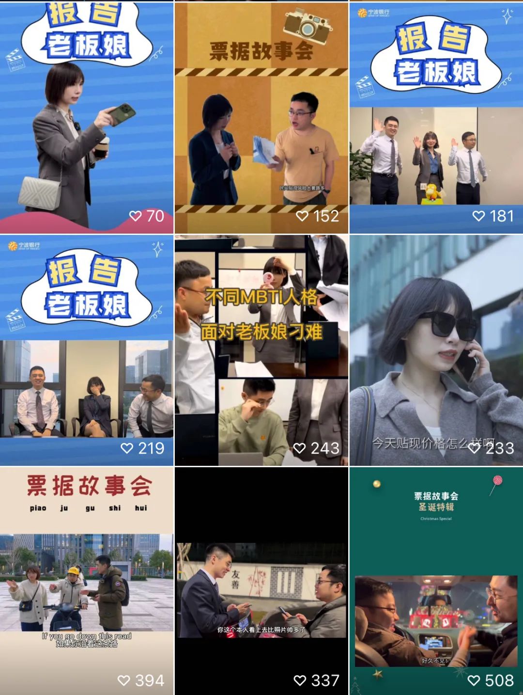 其中,宁波银行票据部门运营的部门视频号,推出《报告老板娘》《票据故事会》等系列短剧。