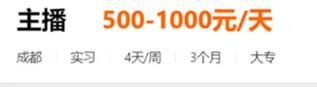 不仅是正式岗位,就连实习主播的实习薪资也不低。某招聘网站显示,某互联网银行招聘30名实习主播,日薪为500-1000元,这还不是在北上深这样的一线城市。