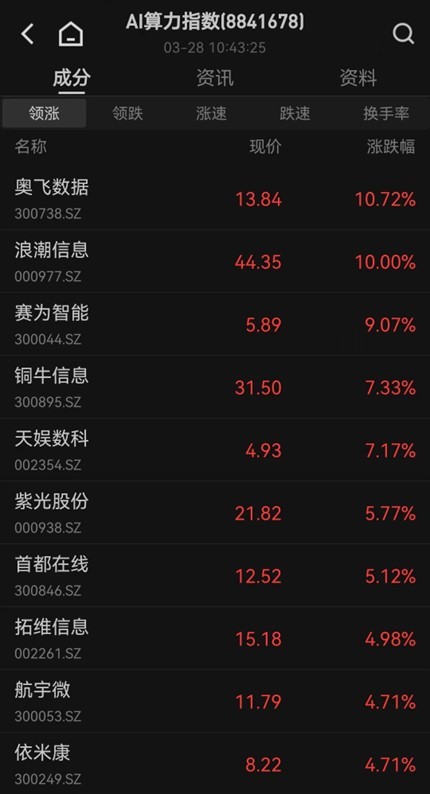 算力、液冷服务器概念股持续走高,浪潮信息涨停,杰创智能涨超7%,紫光股份、锐捷网络、拓维信息跟涨。