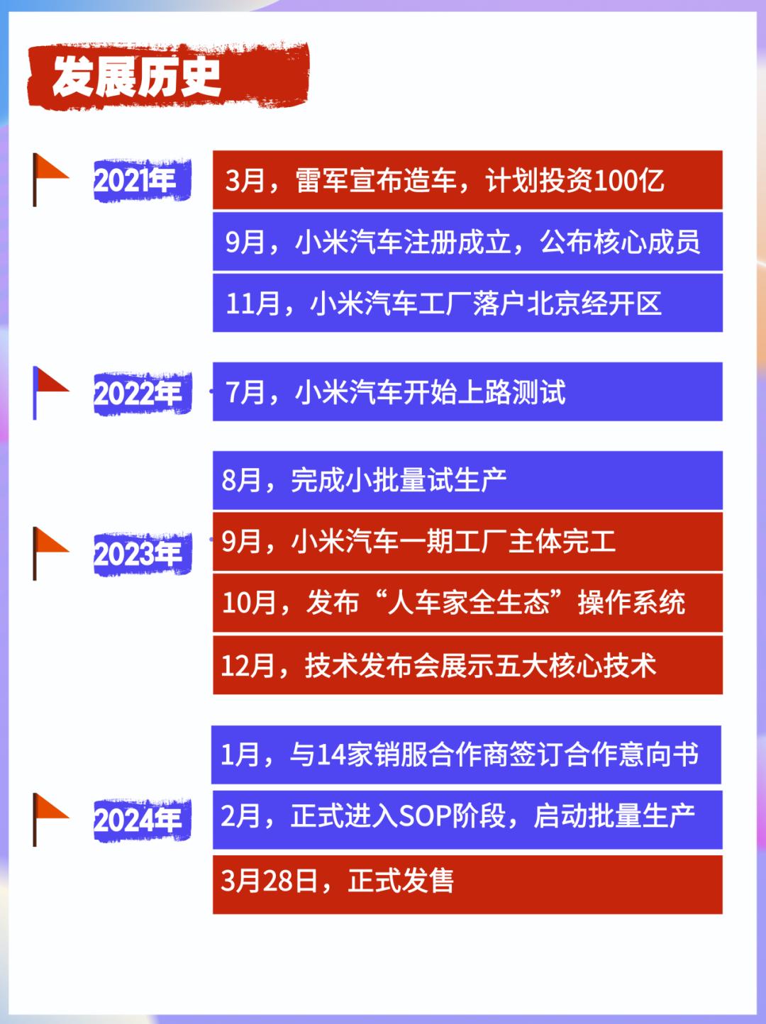 小米汽车品牌的发展历程非常简单,最早2014年有消息传出小米要下场造车,不过后来被雷军否认。直到2021年3月,雷军正式宣布造车。9月1日,公司正式注册成立,到现在满打满算只有3年。