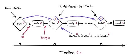 这些模型生成的结果持续用来再训练新模型,数据的多样性会越来越小、符合丰富真实的正确度会越来越有限、“近似值拟合”会越来越严重。