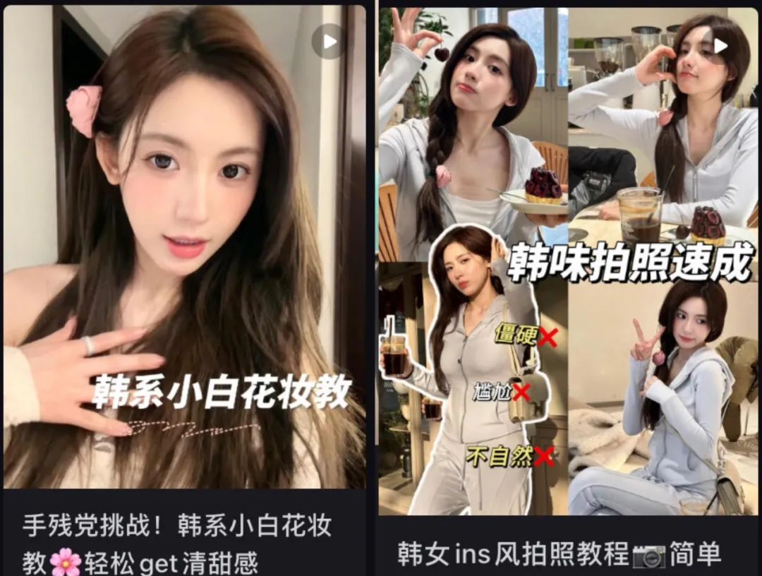 粉丝爱看,博主就出了韩女风格的妆容和拍照教程。(图/小红书截图@美大宝)