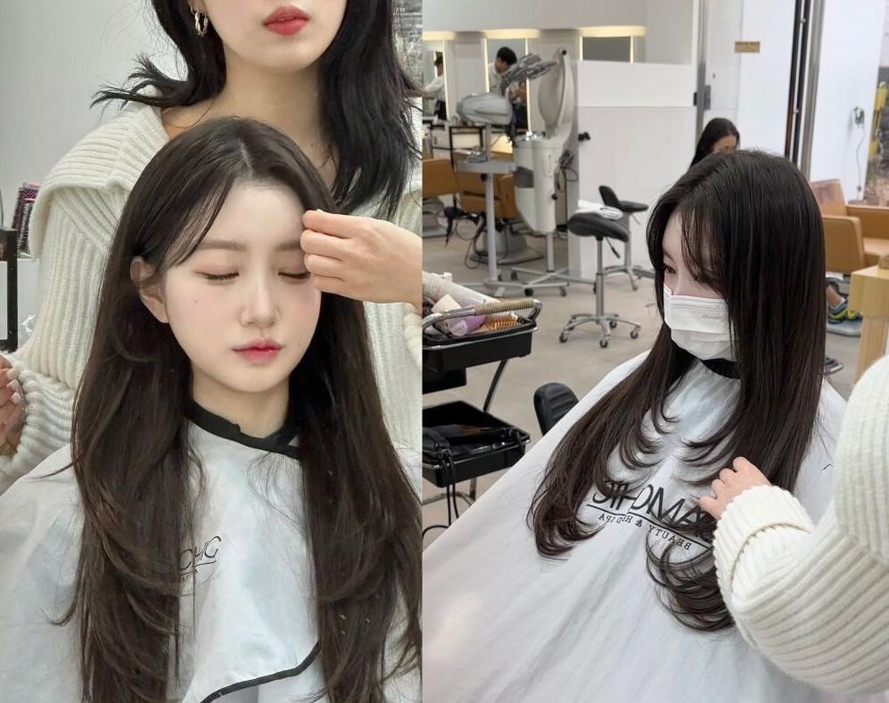 圆圆在韩国工作室做发型。(图/受访者提供)