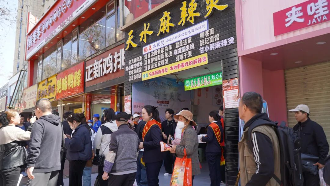 天水几乎每家麻辣烫店外,都挤满了前来打卡的游客。(图/微博@甘肃银行)