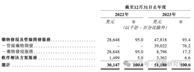 财报数据显示,英矽智能 2023年实现收入5118万美元,同比大增70%。其中,3900万美元来自药物开发项目对外授权,是营收的主要来源。