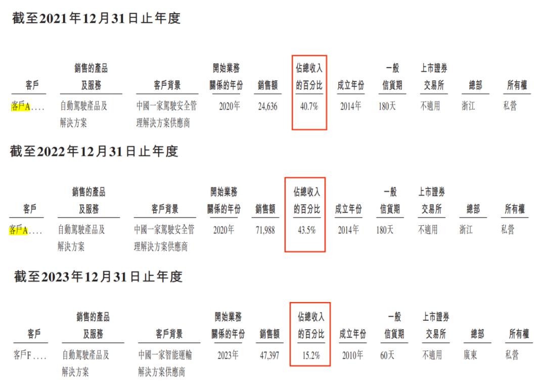 但在2023年,这个客户A消失在公司前五大客户的名单中,第一大客户被客户F取而代之。黑芝麻智能描述其是一家智能运输解决方案供应商,双方自2023年才开始合作。