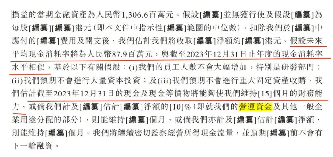 按照招股书的说法,假设未来平均现金消耗率将为8790万元,与2023年的现金消耗率水平相似,估计这些资金将能够维持15个月的财务能力。