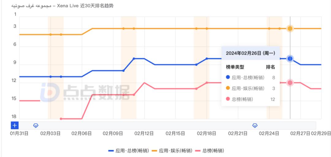 Xena Live 近 30 天 Google Play 榜单排名情况|数据来源:点点数据