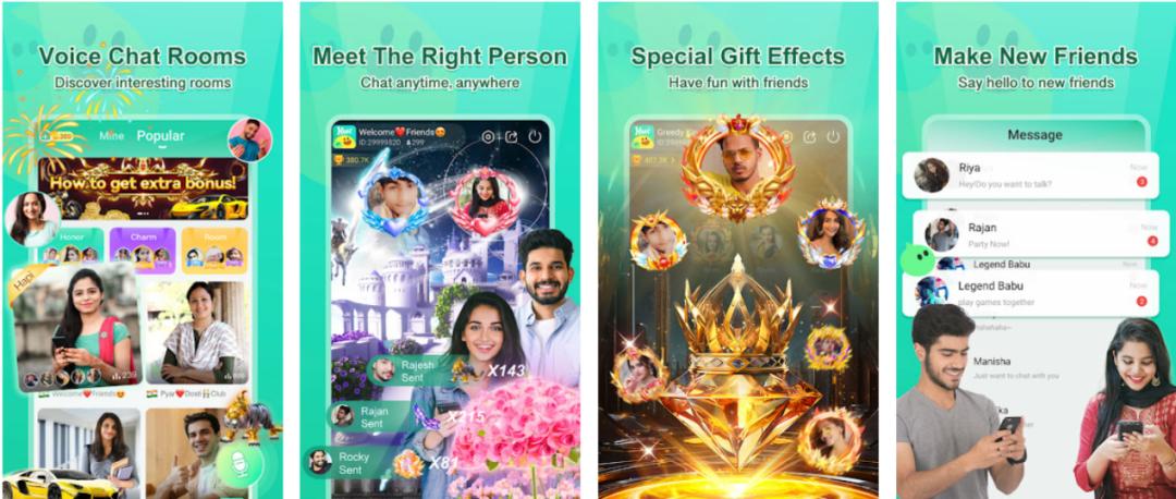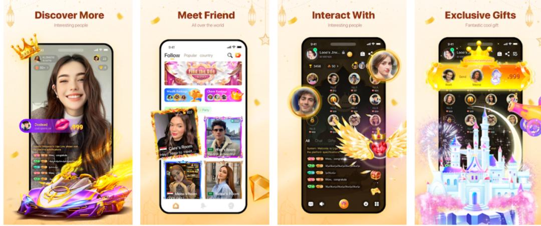 哪怕不做中东市场或者不从事泛娱乐行业的朋友可能也会知道,语聊房和视频社交是中东最流行的产品形态,但实际上语聊房和直播产品又可以分成很多具体的类别,我们用头部产品举例来看。
