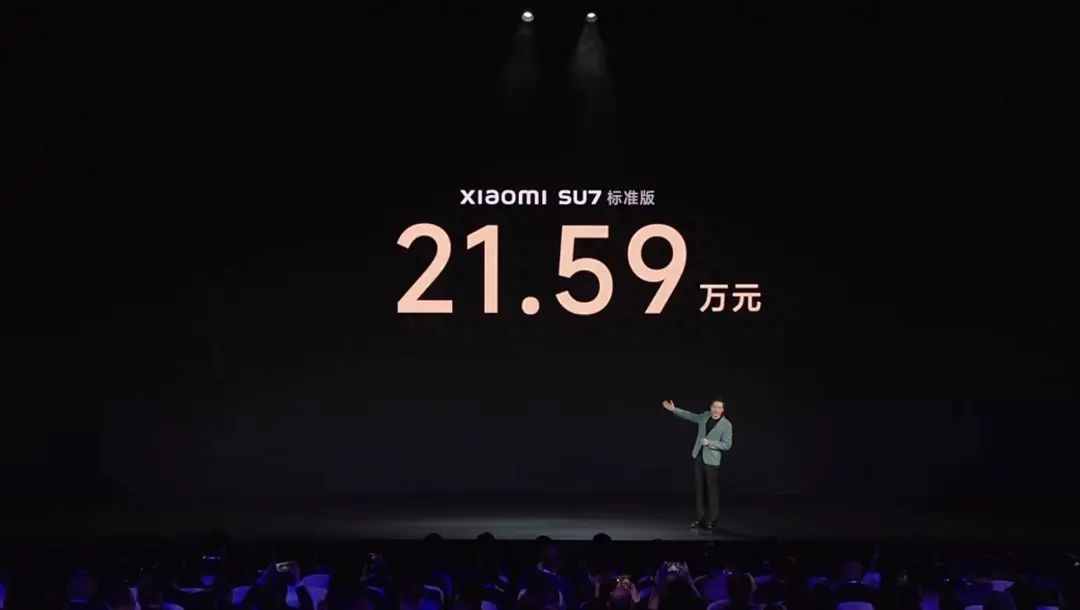 3月28日晚,在北京亦庄会展中心,雷军再次穿着一身笔挺的西装,以雷斯克的形象折解了一次全民的价格猜想,小米SU7共有三个版本,标准版定价21.59万元,算上权益,进入了20万元区间: