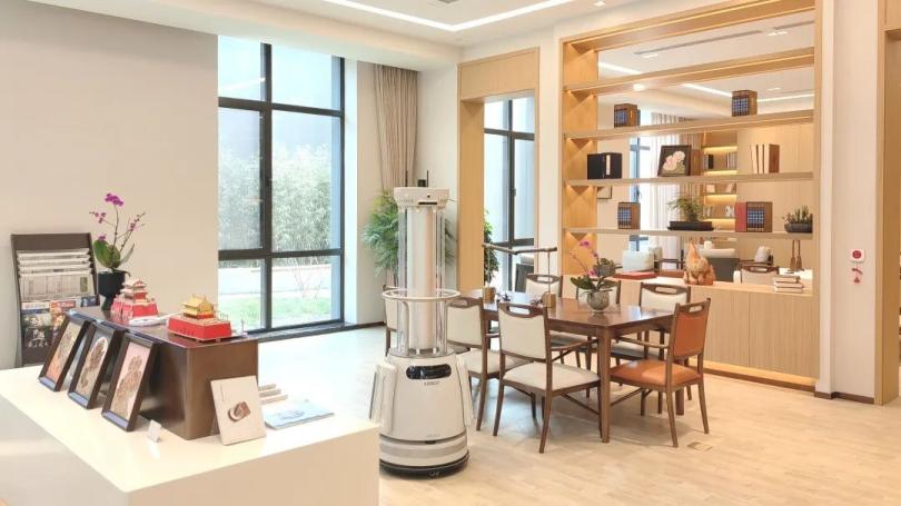 这一养老社区引入了大量功能各异的AI机器人,如清洁机器人、送餐机器人、智能代步机器人,它们在社区内各司其职,让无障碍出行服务落到实处。
