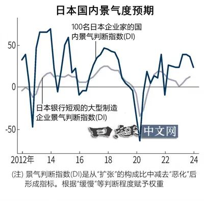 日本企业家的乐观经济预期出现了停滞不前的迹象。在“100名日本企业家问卷调查”中,认为当前国内经济正在扩张的受访者占5成,较上次调查下降了20个百分点以上。日本主要企业将在2024年度实施较高的加薪,但很多企业高层希望关注个人消费的趋势。对中国经济的前景也出现了担忧。