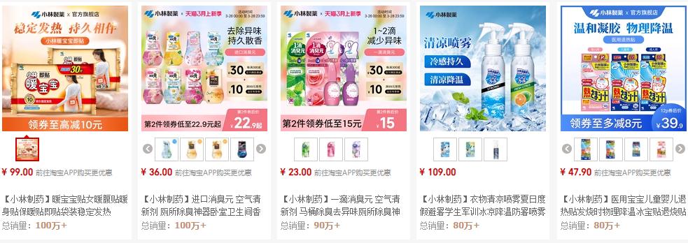 暖宝宝和消臭元在天猫旗舰店的销量都是百万级