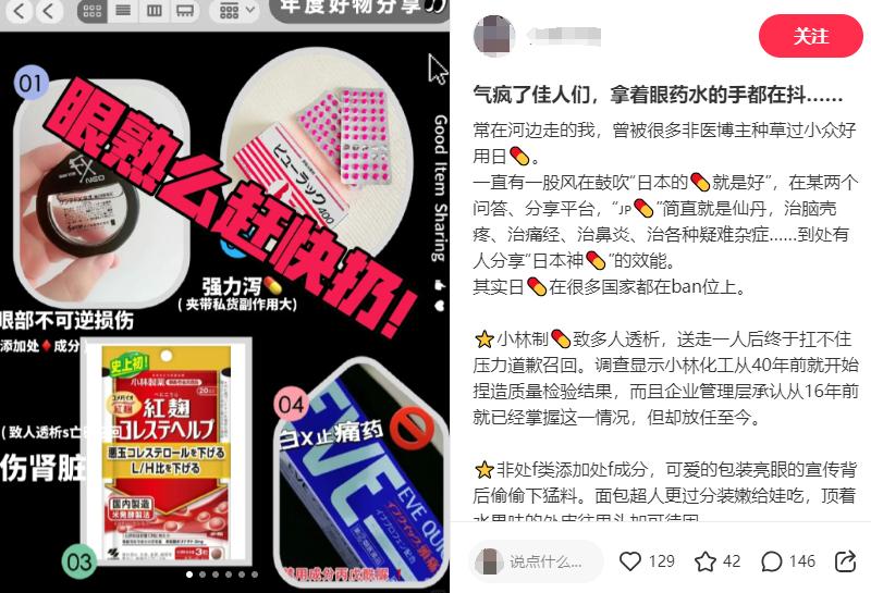 至少从国内社交平台讨论来看,中国消费者对小林制药的态度,已经从前些年吹捧“神药”,变成直呼“智商税”“害人药”。