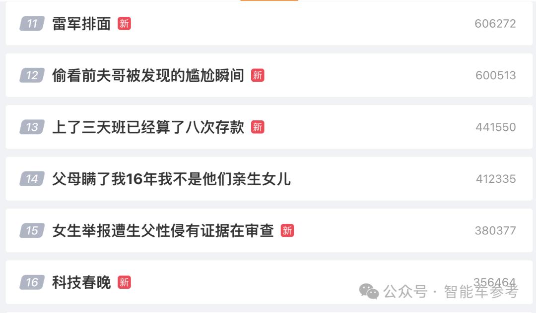 微博、百度和抖音三大平台,小米持续霸榜热搜,「车圈春晚」赫然在列。