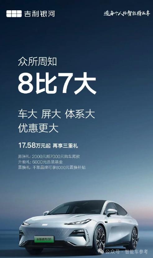 不过吉利家倒是有一款车有所反应,吉利银河E8,价格区间17.58-22.88万元,虽然同是五米长的纯电轿车,但从价格上来看,显然和SU7竞争关系不大。