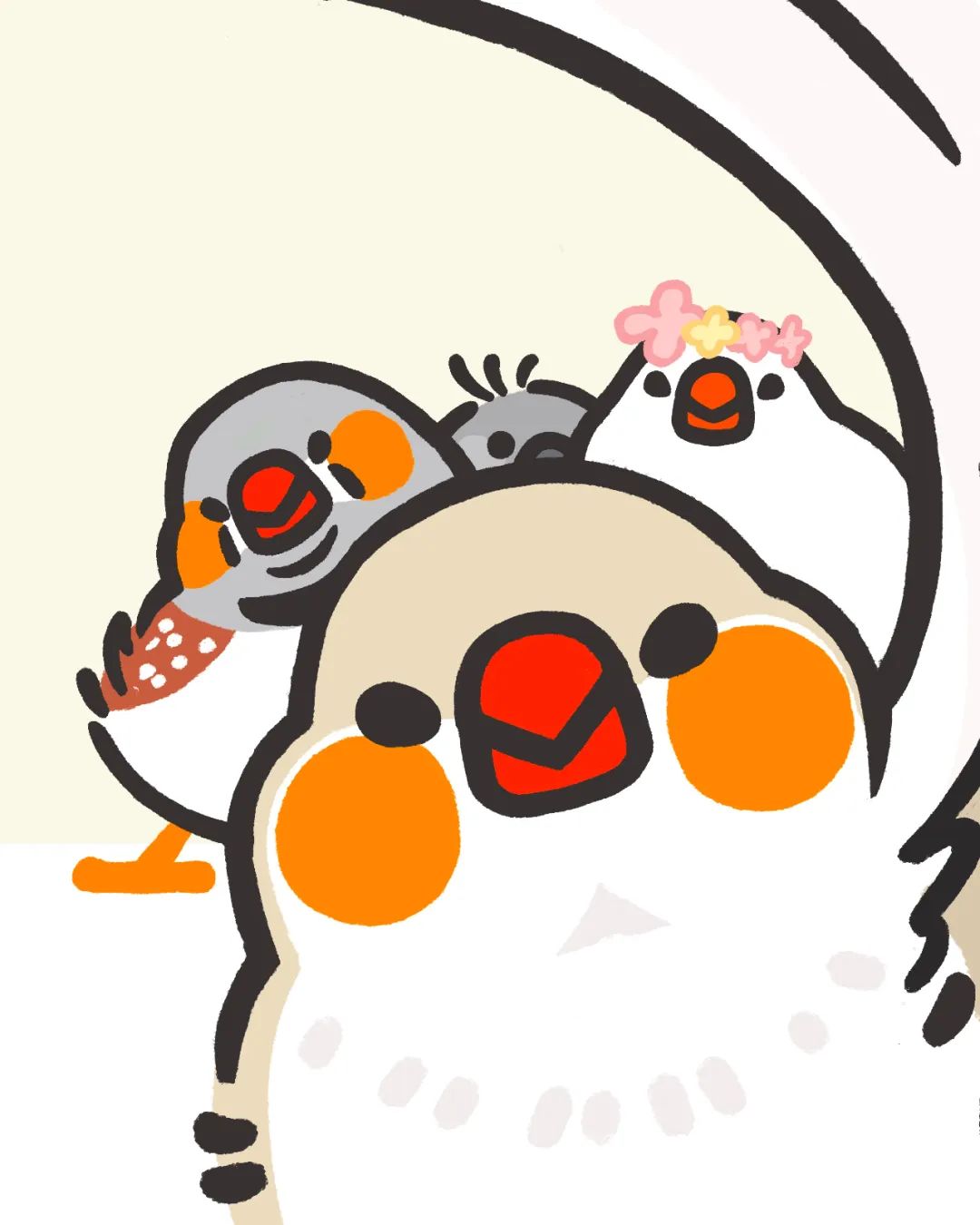23年末,33岁的啾啾开始在社交媒体上更新自己画的小鸟,每周一张,主题不同,场景也不同。有睡觉的小鸟、贴贴的小鸟、吃饭的小鸟,有小鸟形状的汤圆、小鸟形状的圣诞树,还有画着小鸟的春节红包等。啾啾给这一系列的小鸟初步起了个IP名,叫zazabird。