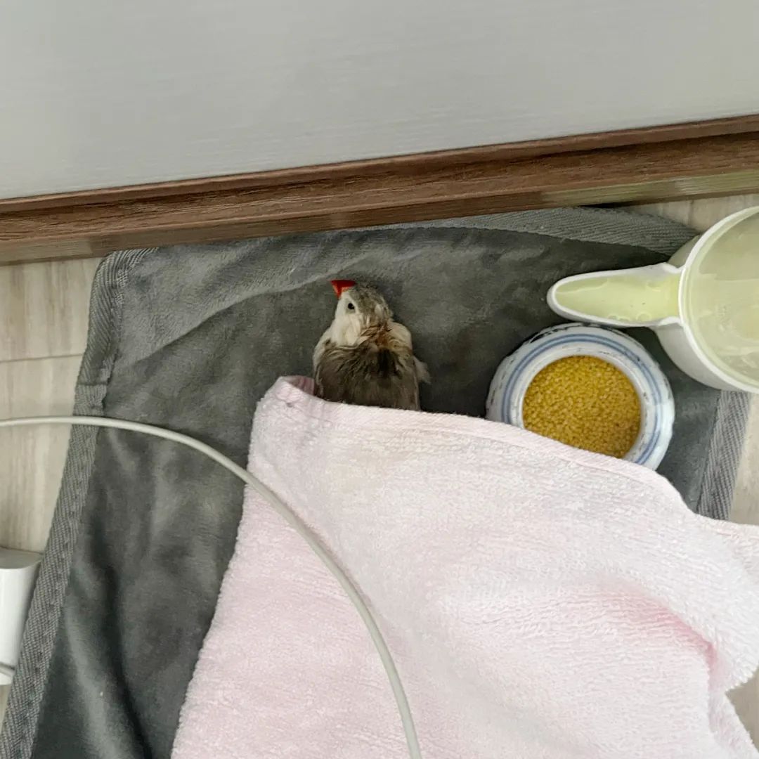 那阵子,是疫情最严重的时候,啾啾想给胖丫头买个保温箱安置。但因为封控,商家都不发货。啾啾只能在本地自营那里买了个电热毯和电灯泡,做了个简易的保温箱。后来,啾啾不幸被传染了新冠,还要撑着自己虚弱的身体每天给胖丫头喷药,“又伺候她又伺候我自己”。
