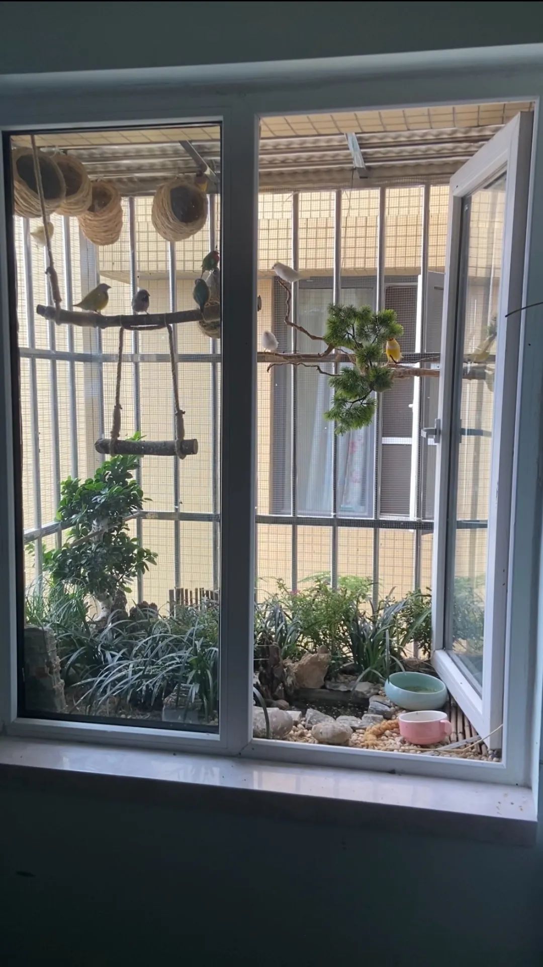 那时,市面上能看到的鸟笼,差不多都是双肩包大小。李阳想要给小鸟提供些更大的地方,让它们飞得更自在些。恰好 李阳用来健身的房间的防盗窗刚好闲置着,天气好的时候,阳光总会透着朝东的窗户打进房间,特别漂亮。 李阳便有了把这里改造成鸟笼的念头。