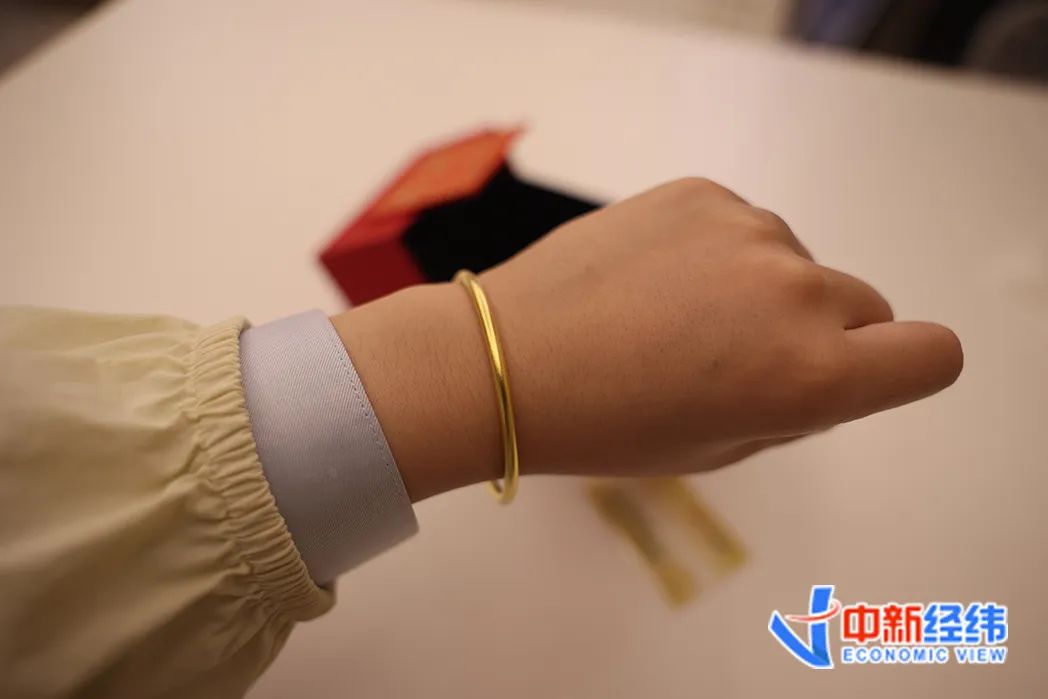 在社交平台上,也有部分网友晒出自己在银行购买的金饰。“银行买金真香,没有额外收工费,怒买50克”,一位网友在帖子中晒出手上的金手镯,还有网友表示,“在银行买金手链,真的很划算”。