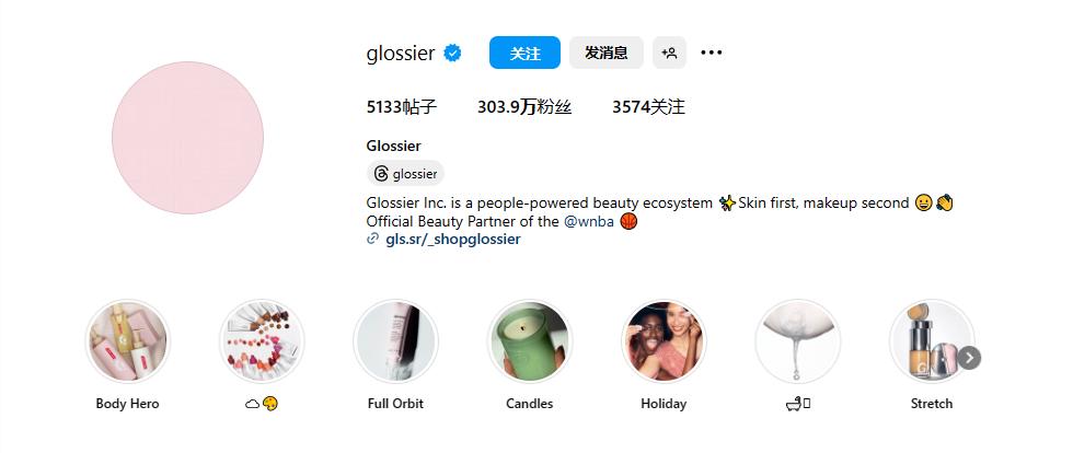 此外,Glossier将品牌目标用户确定为年轻一代的消费者,依托Into the Gloss博客打造属于自己的客户群与社区生态,并投入了大量成本在各大社交平台上推广、塑造品牌。而该品牌在社交媒体上的影响力也一直不容小觑,该品牌曾宣称在18至34岁之间的女性中,每5名女性就有2名认识Glossier。截至发稿前,其在Instagram粉丝已达304万。