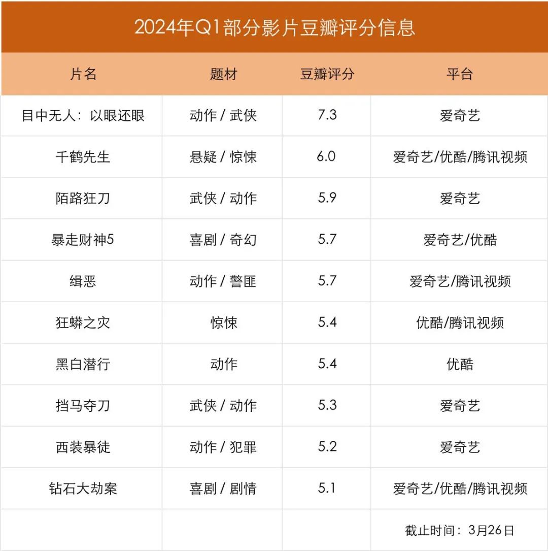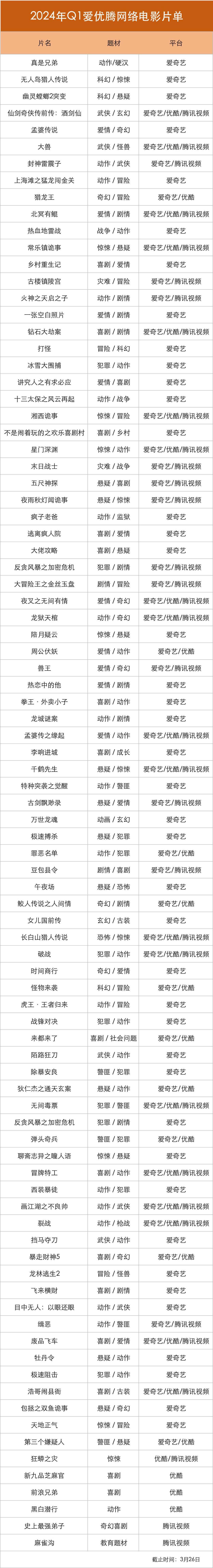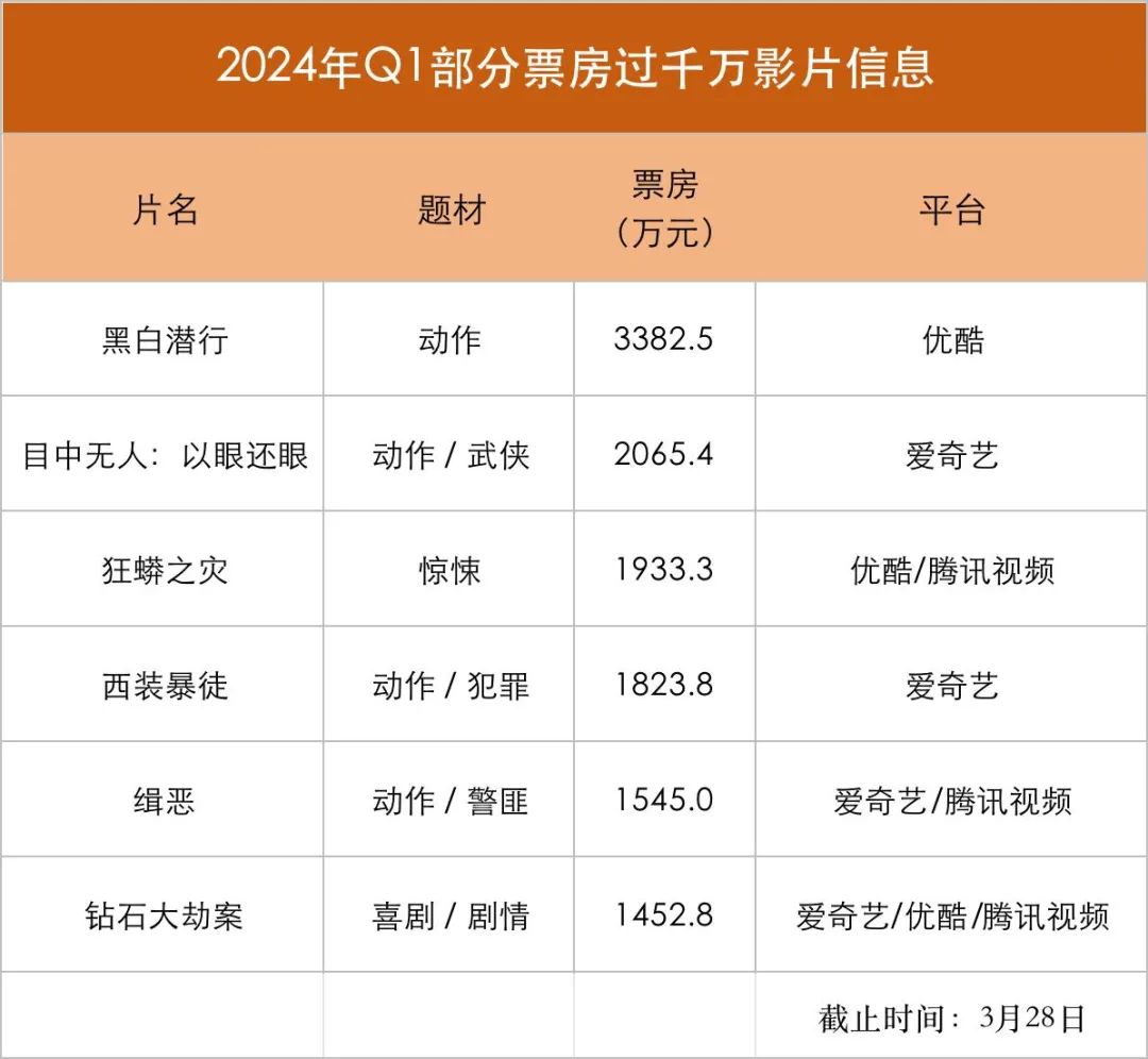 网络电影精品化的趋势,在2024年Q1得到了充分的支撑。
