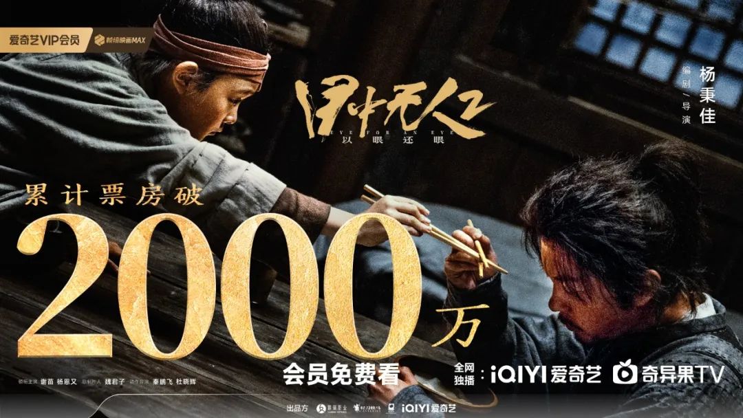 这部电影是2023年爆款电影《目中无人》的续作,原班人马+武侠故事的延续+内容制作升级,让这部电影的表现得到了观众的认可,大呼谢苗打戏太燃了,称赞这部电影是自《绣春刀2》之后最好的武侠系列。来自猫眼第三方的数据显示,影片累计获得9次全网热度冠军,最高达到9221.97。超高的热度和口碑,也让这部电影的分账票房迅速突破2000万,考虑到其目前还处于会员分账期,未来还有一定的票房增长空间。