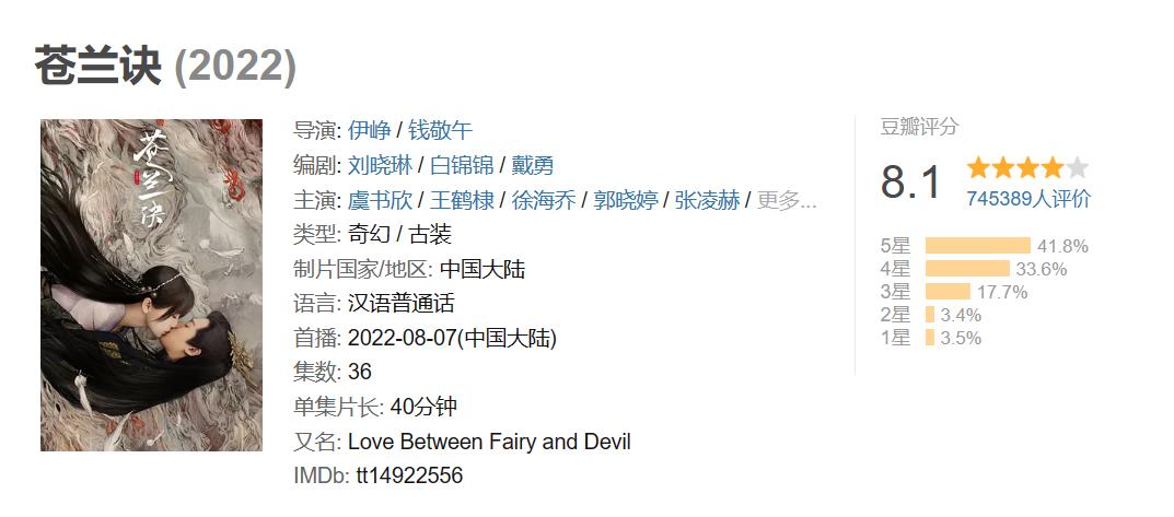 74万人打出8.1分的《苍兰诀》,就是凭借着对旧有古偶剧模板和套路的解构,再加上各方面都在水准线以上的制作,成为2022年的爆款剧集。