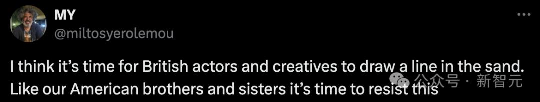 电视剧《权力的游戏》的演员Miltos Yerolemou呼吁,英国的演员和创意者们应该像美国同行一样采取行动。