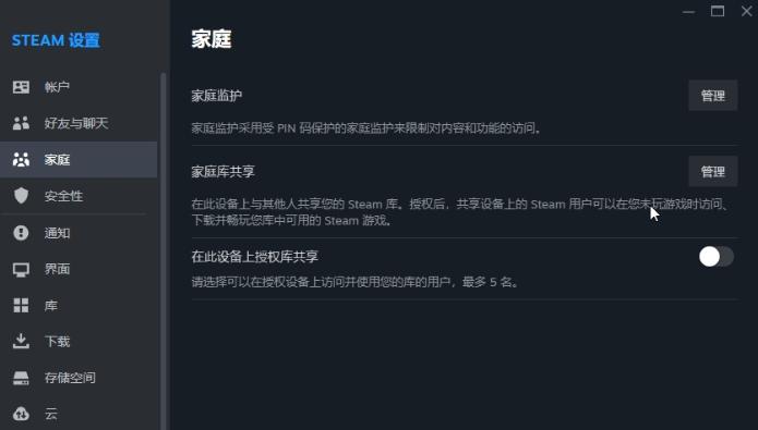 重启 Steam 后,设置里的家庭功能就会变成新版,并且在账户明细里也可以进行家庭管理。