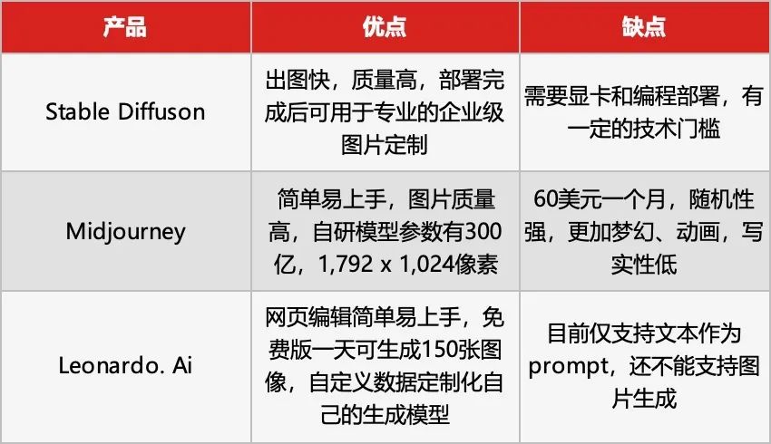 2022年8月,Stable Diffusion以三个月用户量增长1000万称霸市场;到后来,Midjourney通过产品迭代,在相当长时间内流量高居行业第一;到现在,Stable Diffusion陨落、Midjourney流量被Leonardo. ai反超。