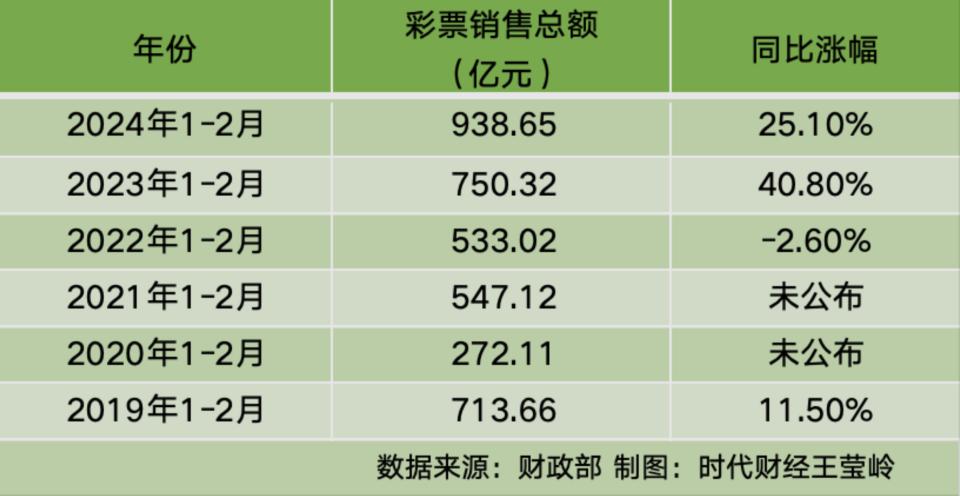 从2024年前两个月的彩票销售情况来看,销售总额也是2019年以来同期最高。
