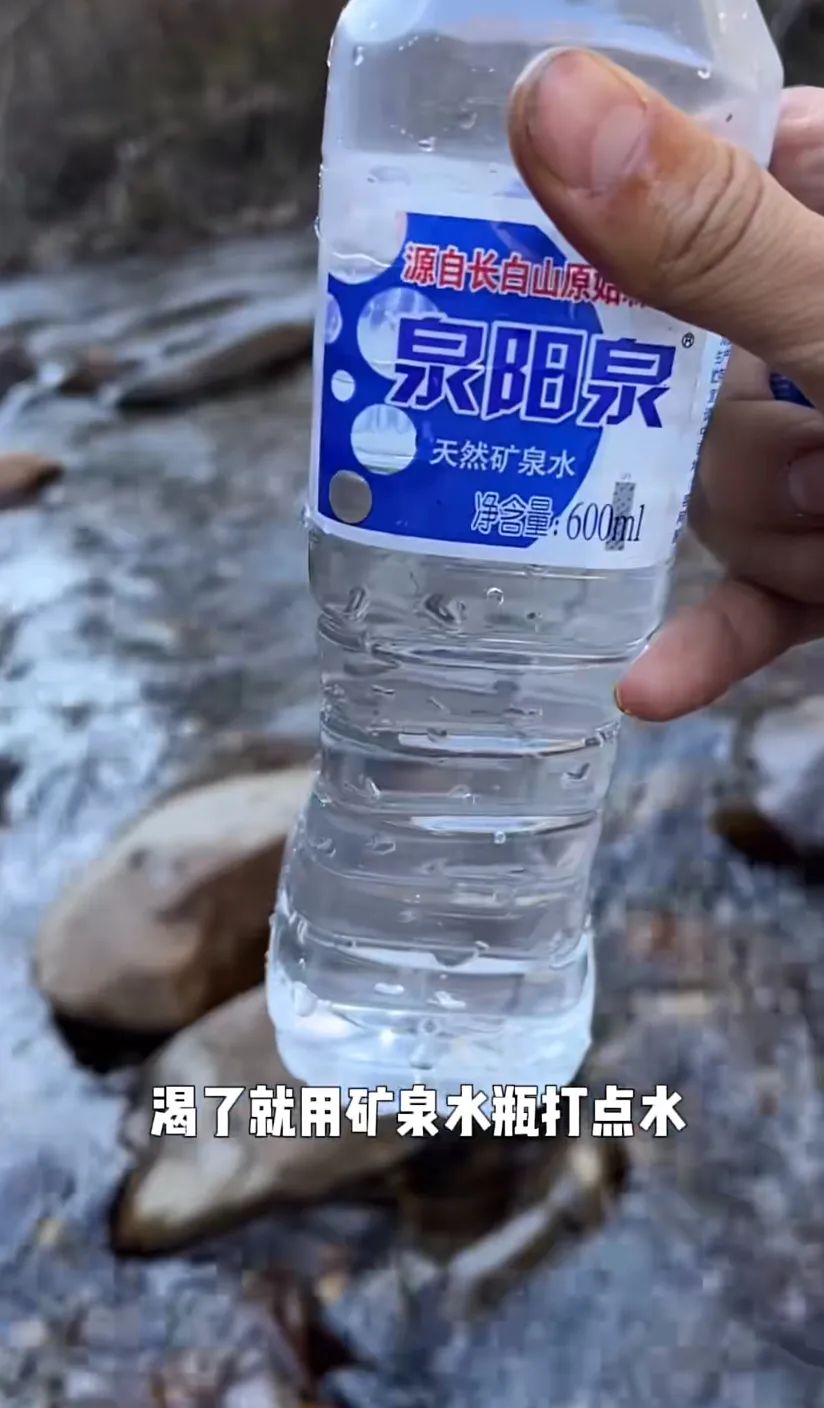 相比之下,跑山人吃的食物就显得糊弄了些。偶尔,大哥会带保温饭盒,里面装着家人做的饭菜。但大部分时候,他们的午饭只有早上打包的一些饼和包子,已经冷掉。水是很重的,所以跑山人几乎不带水,要喝水时,就喝山间的溪流泉水。这种粗犷的生活方式,让远离山林的人们惊奇,而姜哲总是向看他视频的网友们解释:“山上的水据说是从长白山天池流下来的,这里的跑山人喝了十几年,一点问题都没有。”