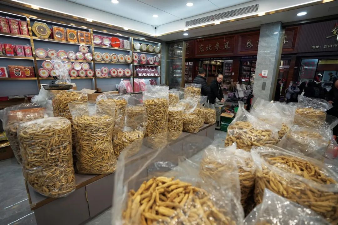 2024年1月27日,浙江温州。批发长白山药材的商户正在忙碌。(图/毛建军/中新社)
