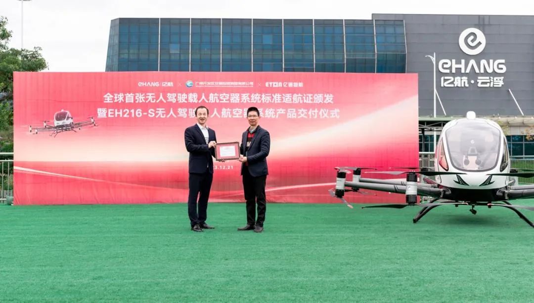 仅仅两年后,亿航智能就发布了全球首款无人驾驶载人航空器。去年10月,又获得了中国民航局颁发的、也是世界首张无人驾驶电动垂直起降航空器型号合格认证。