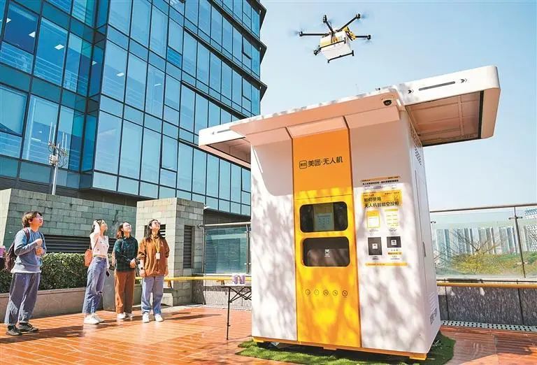 最常见的有送外卖。截至2023年11月,美团无人机在深圳落地了7个商圈,开设了21条航线,累计完成订单超21万单。