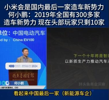 曾经多达数百家的新能源车企,如今只剩寥寥数家。最近在中国电动汽车百人会论坛(2024)高层论坛上,何小鹏还说:小米很可能是中国最后一家造车新势力了。