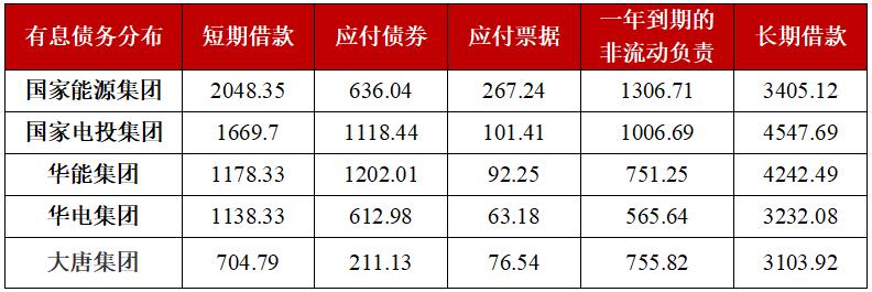 五大电力有息债务统计(截至2023年11月15日;数据来源:Wind,单位为亿元)