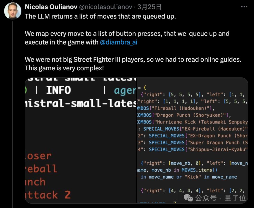 再把大模型生成的动作招式映射成按键组合,就能发送给游戏模拟器执行了。