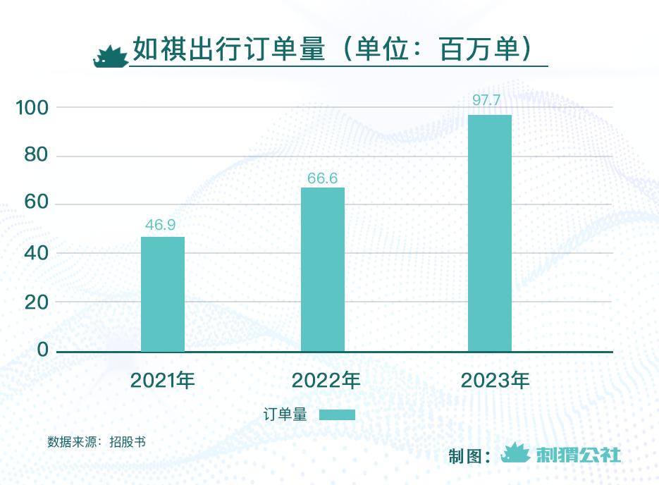 但与此同时,如祺和其他同行一样,网约车订单数量在持续增长,从2021年的4700万单暴增至2023年的接近1亿单,这使得如祺出行平均每单的亏损,从过去的一单14元缩小到了一单7元。业务量增长了,但为什么平台还是赚不到钱?