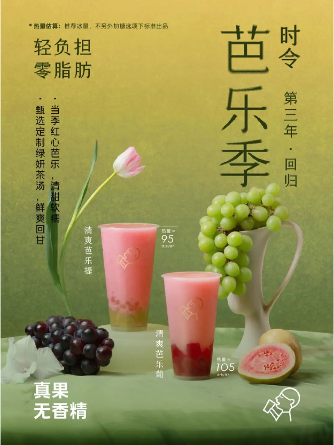时令水果和开运营销的加持,“开工见喜”的热度居高不下,而喜茶今年也延续了同样的动作,由于善于发挥品牌特色,利用时令品质水果作为饮品原料,喜茶在开工日便推出“开工第一杯”,升级回归芭乐系列,推出了清爽芭乐提、清爽芭乐葡两款新品。上新首日便成为销量TOP1的产品。