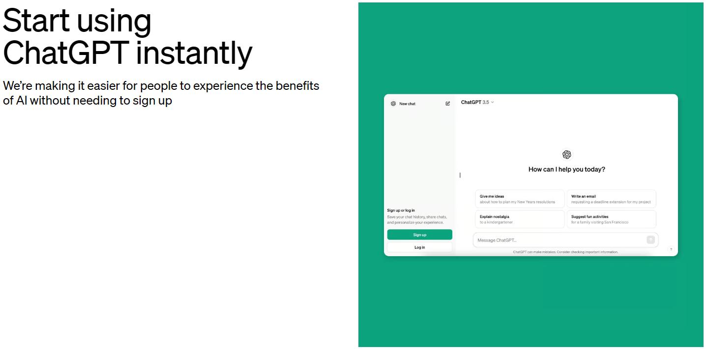 当地时间4月1日,OpenAI宣布,将让用户无需注册即可直接使用ChatGPT。