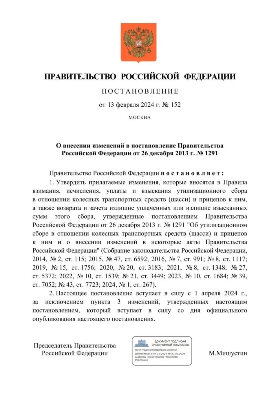 上述提到的新政,指的是原定于2024年4月1日生效的俄罗斯联邦政府第152号法令。新政策意味着,从吉尔吉斯斯坦、哈萨克斯坦、亚美尼亚或白俄罗斯进入俄罗斯的汽车,清关汽车节省的一切费用都必须补齐,包括关税、增值税和消费税等。
